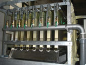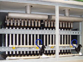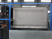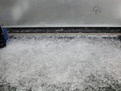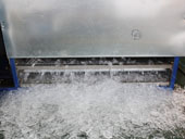 Le nombre de broyeur de plaque de l'évaporateur est réglable en fonction de la capacité quotidienne et des besoins particuliers. Les dimensions de la plaque de glace peuvent aussi être réglées par le système de concassage de glace. La glace en plaque standard est une feuille de glace irrégulière avec environ 40 × 40mm - 80 × 80mm en taille, et 10 mm - 15 mm d'épaisseur. L'épaisseur peut être ajustée en fonction du temps de fabrication de glace avec la jauge maximale étant de 30 mm. Après concassage secondaire, plaque de glace est d'environ 25 × 25mm.